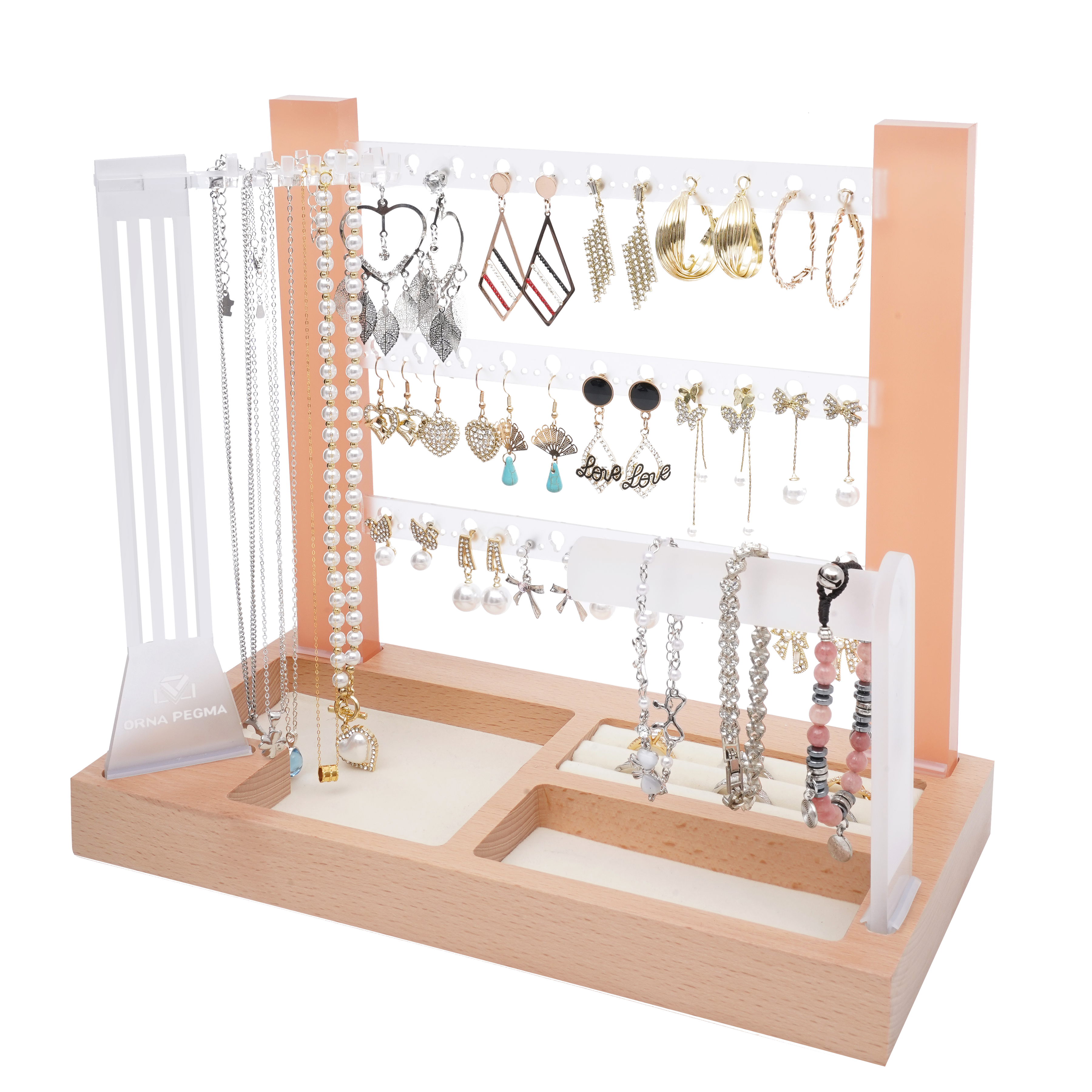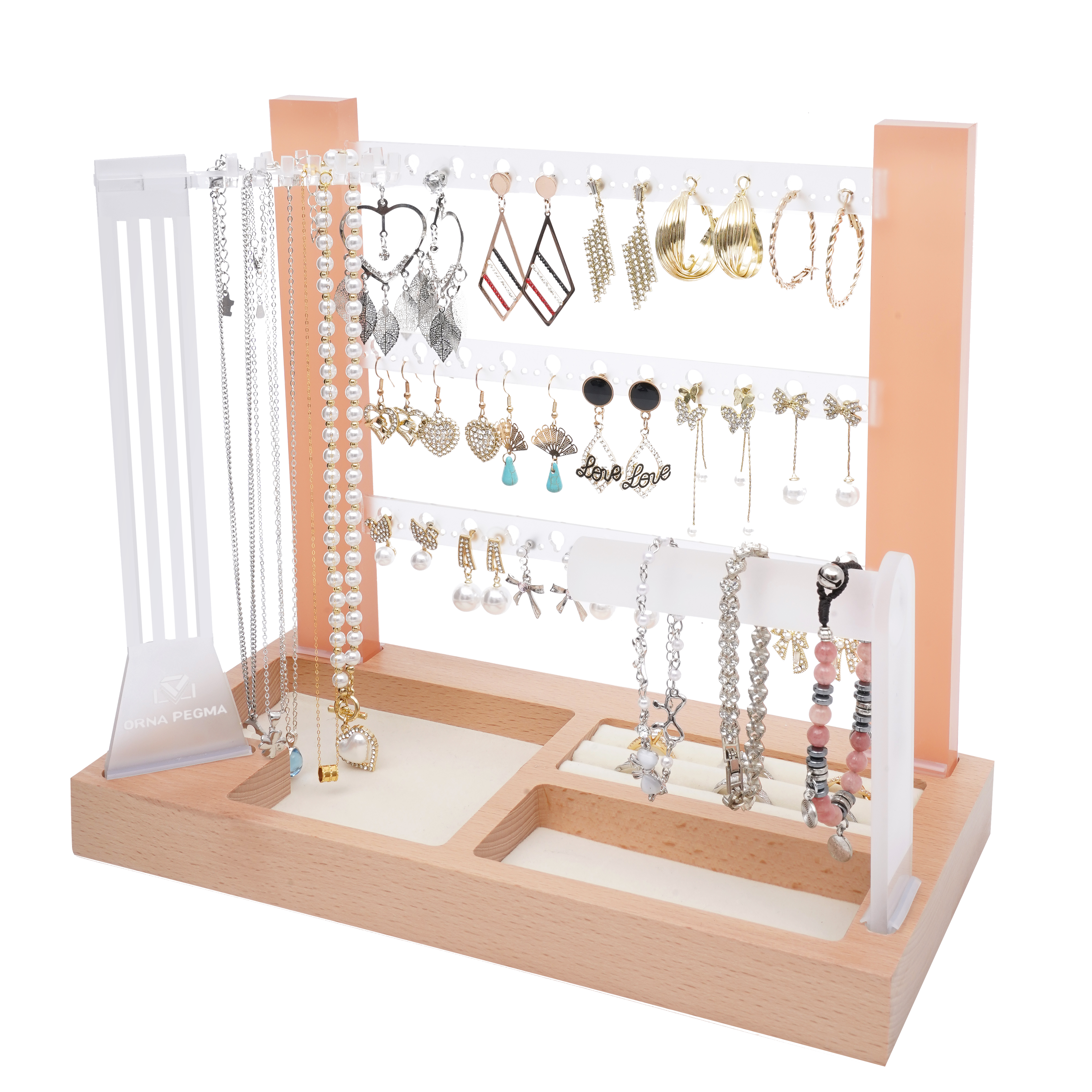 “The Orna Pegma organizer completely transformed how I display my jewelry. It’s not just storage — it’s décor.The wood and frosted acrylic look so refined together, and it keeps every piece visible and untangled. I’ve had friends ask where I got it the moment they see it on my vanity. Truly beautiful and functional.”