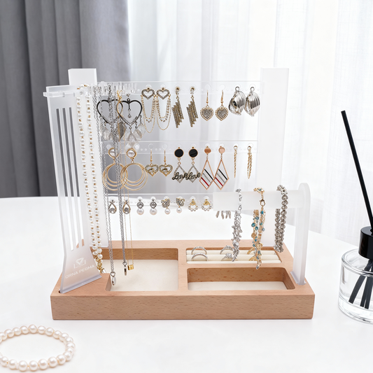 Discover a refined way to store and showcase your jewelry with organizers designed to be both functional and artistic. Crafted from premium frosted acrylic and solid wood, each piece blends modern elegance with thoughtful practicality. More than simple storage, our designs elevate your space — turning everyday organization into a sophisticated statement.