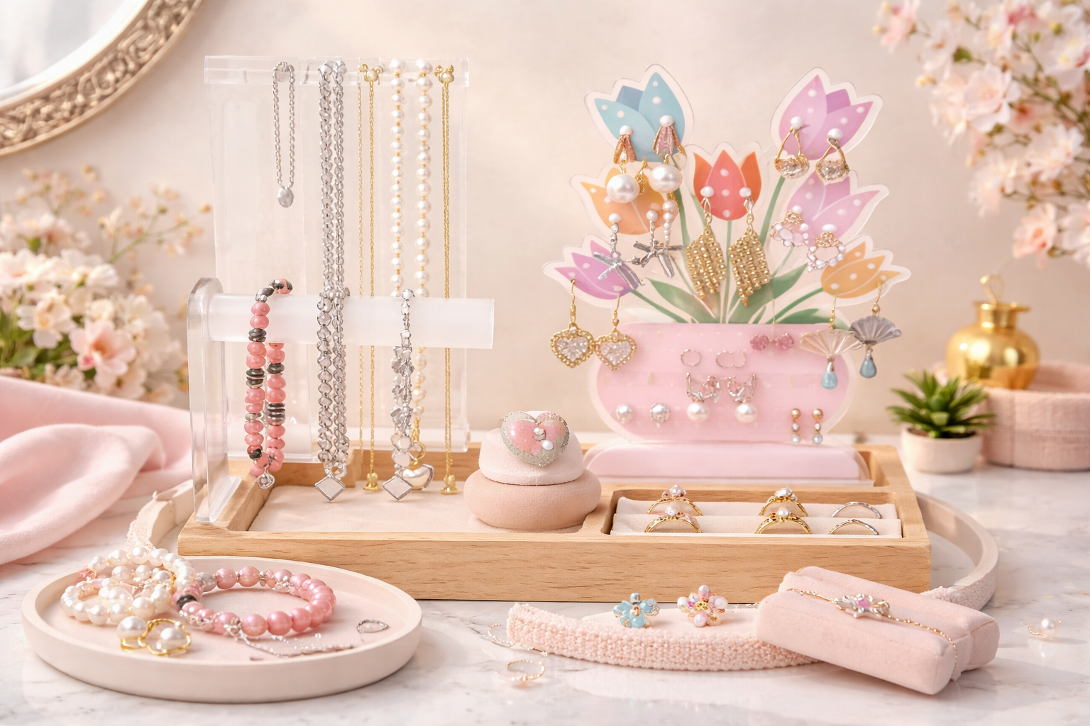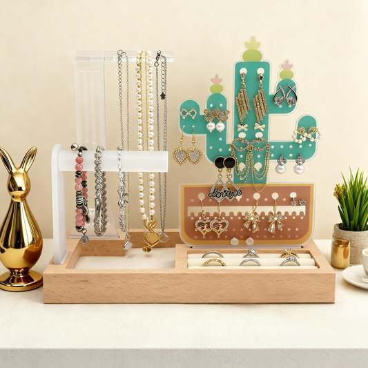 Discover thoughtfully designed jewelry organizers that combine beauty with functionality. From elegant multi-tier storage to charming themed stands, each piece is crafted to keep your favorite rings, earrings, and necklaces neatly arranged and beautifully displayed. With soft pastel tones and eye-catching designs, these organizers don’t just store your jewelry — they elevate your space and turn everyday essentials into a stylish statement.